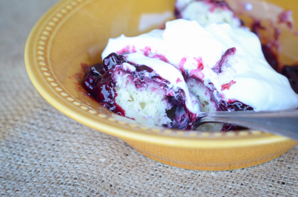 This cobbler is very juicy, but the sweetened berry “sauce” is so delicious it’s worth spooning up. Not to mention the cinnamon and sugar topping that is delightful.