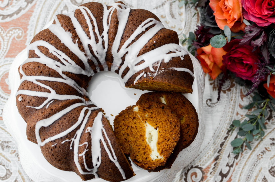 Pumpkin cake is a great substitute for pumpkin pie this year! This cake is so moist and has the perfect amount of filling in the center. Your guests and family will be impressed and excited to try this new dessert.