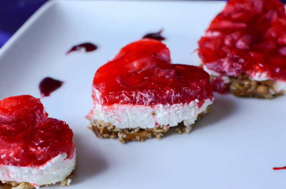 This festive salad will be a hit at the next Valentine’s Party. Be sure to refrigerate the pan once the cream cheese mixture is in so you will have clearly defined layers in your salad.