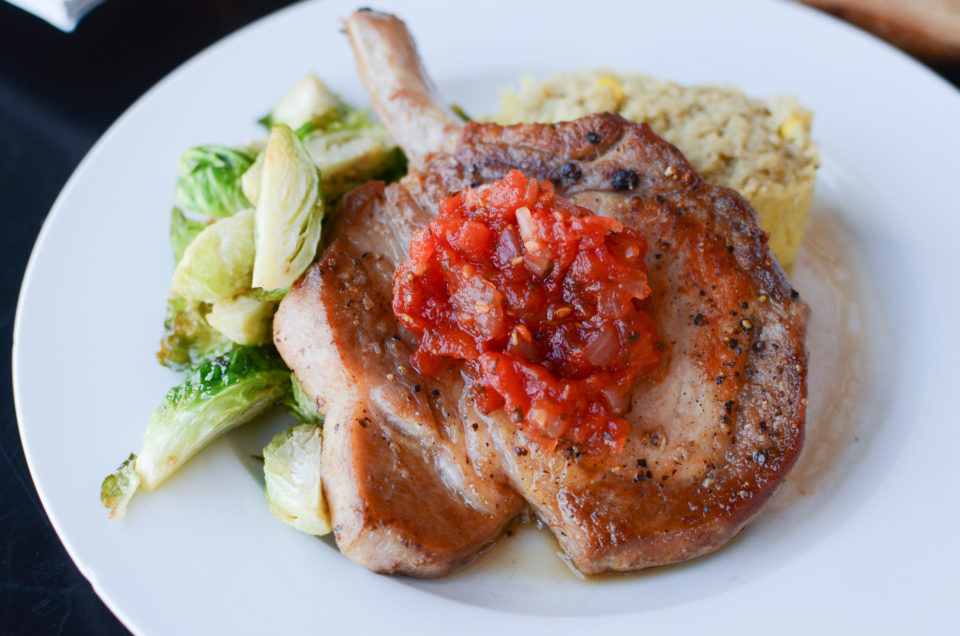 This pork chop is perfectly seasoned and cooked!