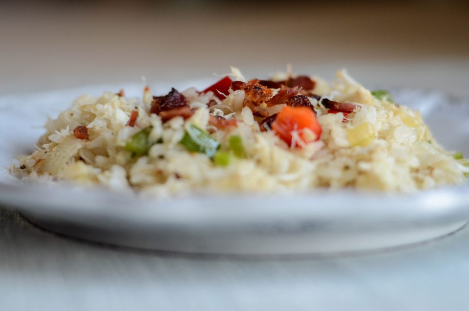 How could you go wrong with crab, peppers, bacon, and rice?