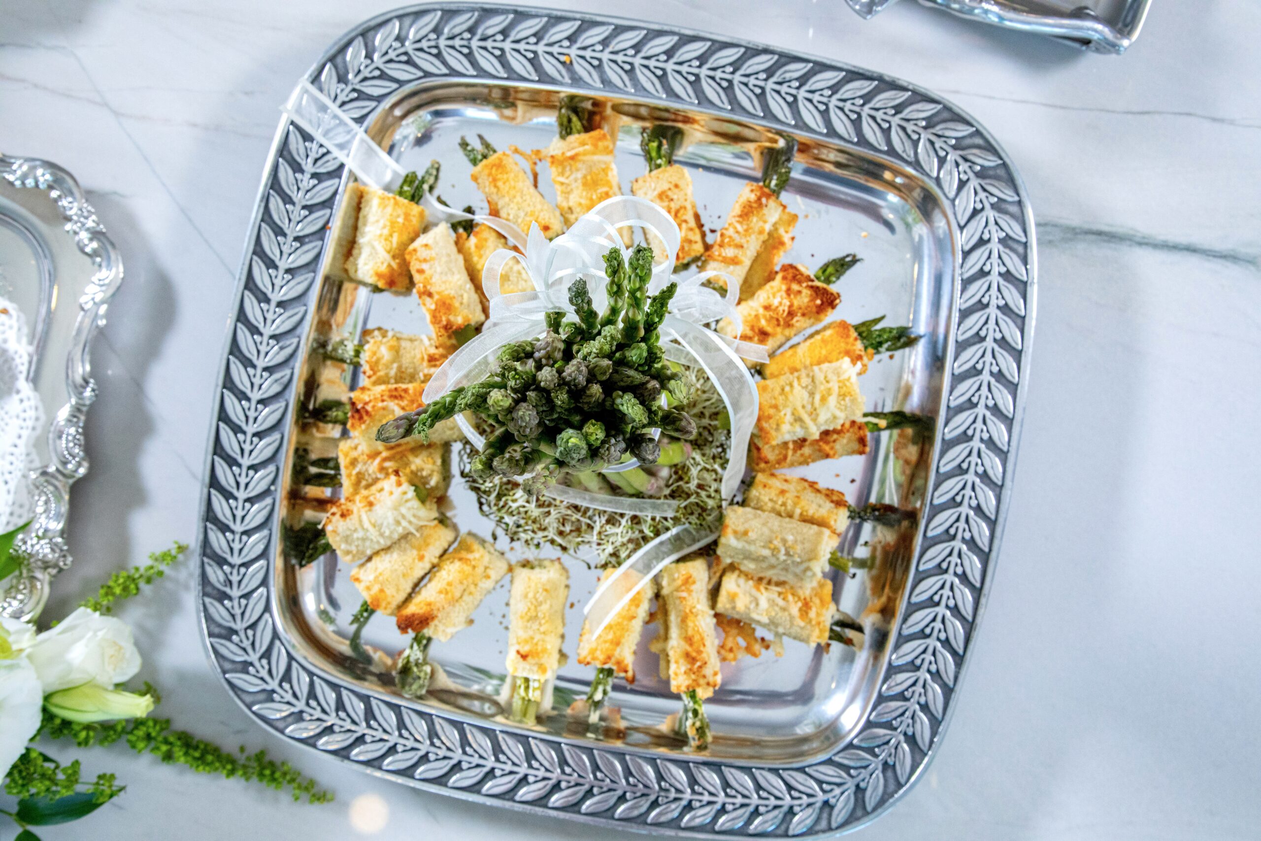 - Place the asparagus roll-ups on the prepared sheet pan and bake for 10 to 15 minutes, or until golden brown.