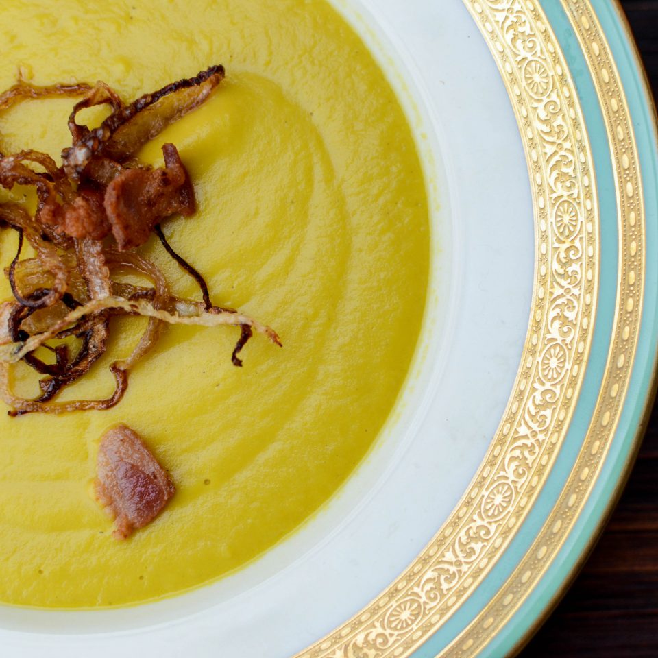 - Add chicken stock and heavy cream and bring to a simmer until squash is soft.