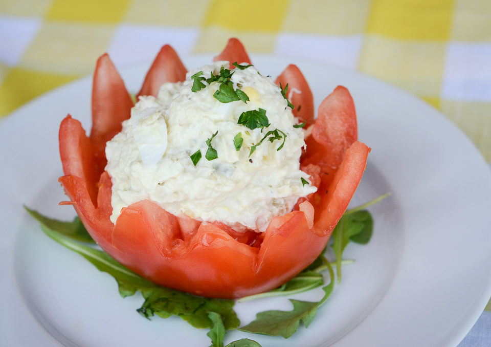 - In a medium mixing bowl, combine the cheese, crumbled bacon, almonds, onion, mayonnaise, and salt and pepper to taste.