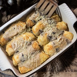 - Transfer each calzone onto baking sheet and bake at 400 degrees for 15 minutes. Let calzones cool for 5 minutes before eating. Serve with Honey Dijon Sauce.