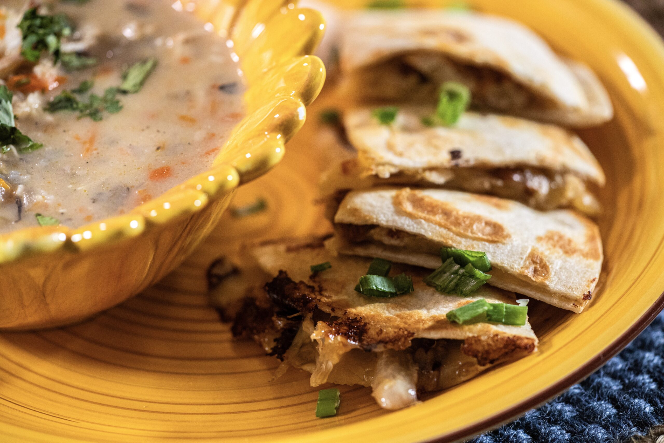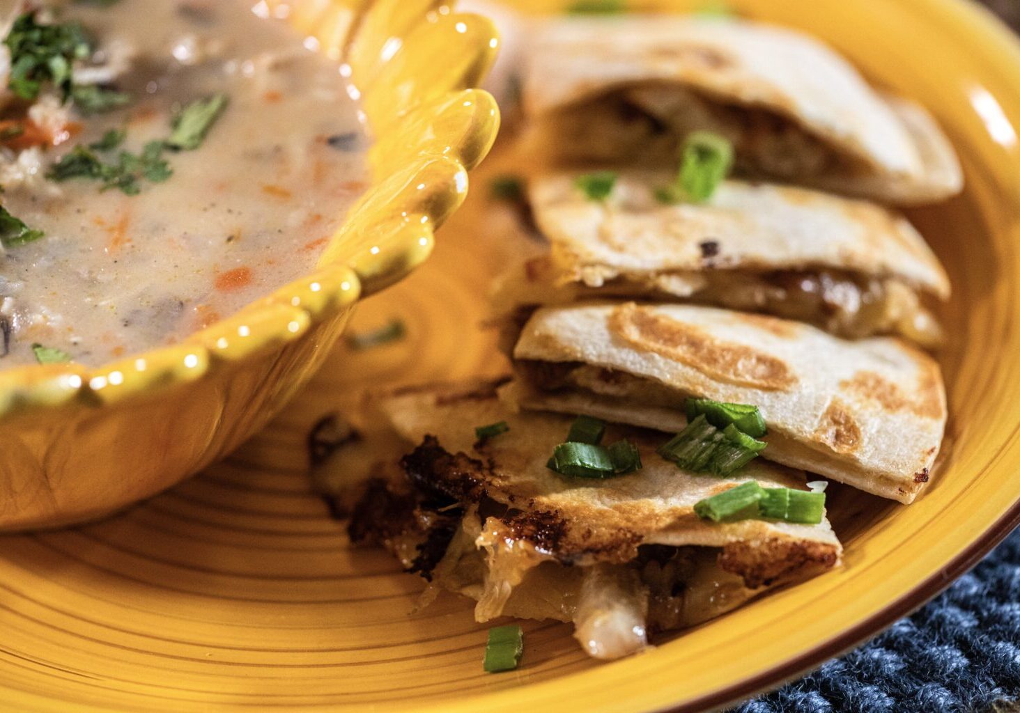 - Remove the quesadilla from the pan and place on a cutting board. Cut the quesadilla into 4 pieces to serve. Continue making quesadillas with the remaining ingredients.
