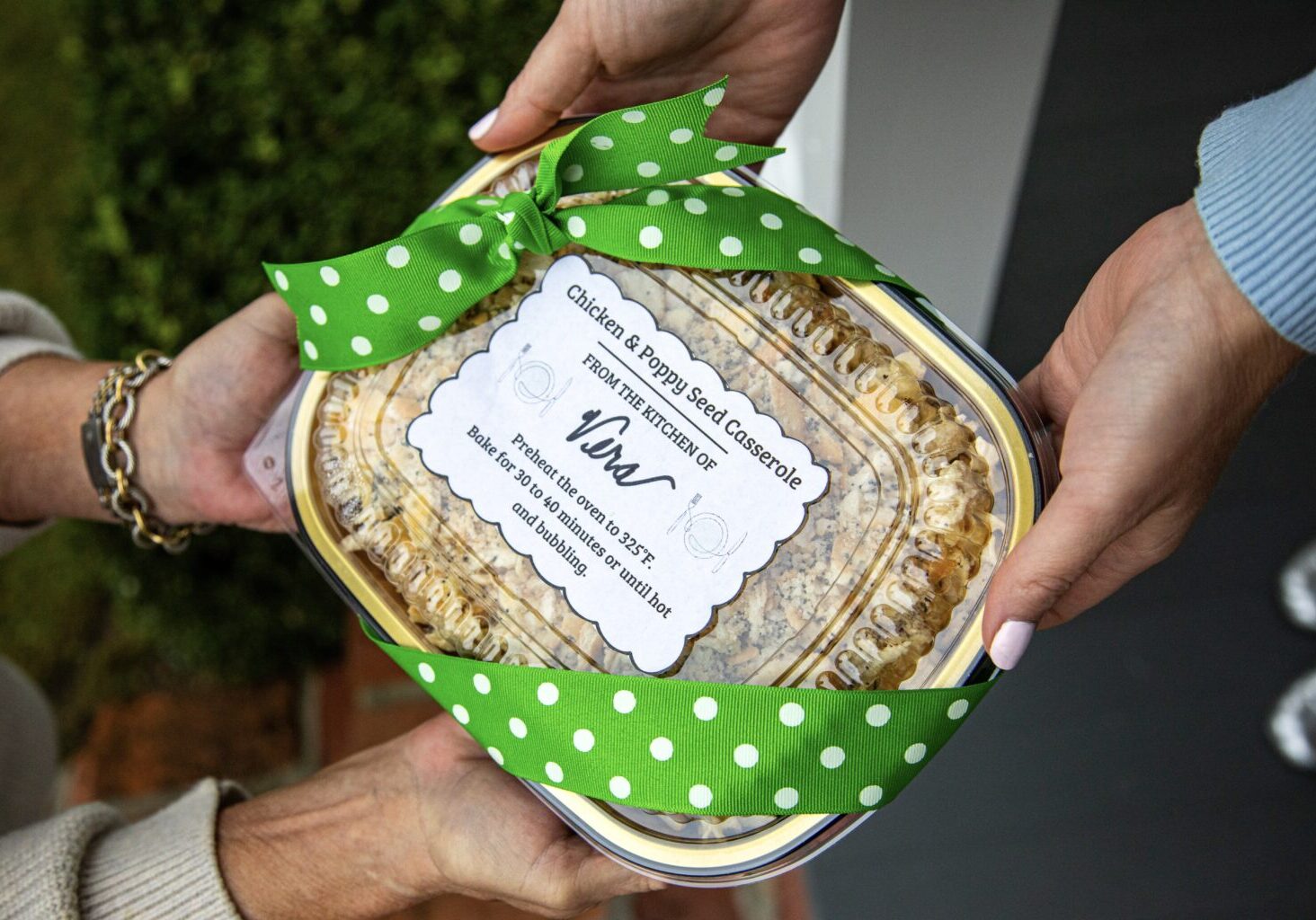 - Mix together the crushed Ritz crackers, melted butter, and poppy seeds.