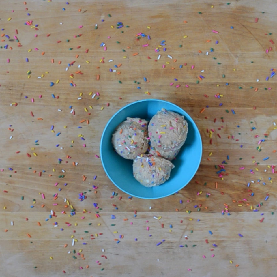 - Roll cookie dough into 1 ½” balls and place on baking sheets. Bake until golden, about 12 minutes. Let cool completely then cut in half.
