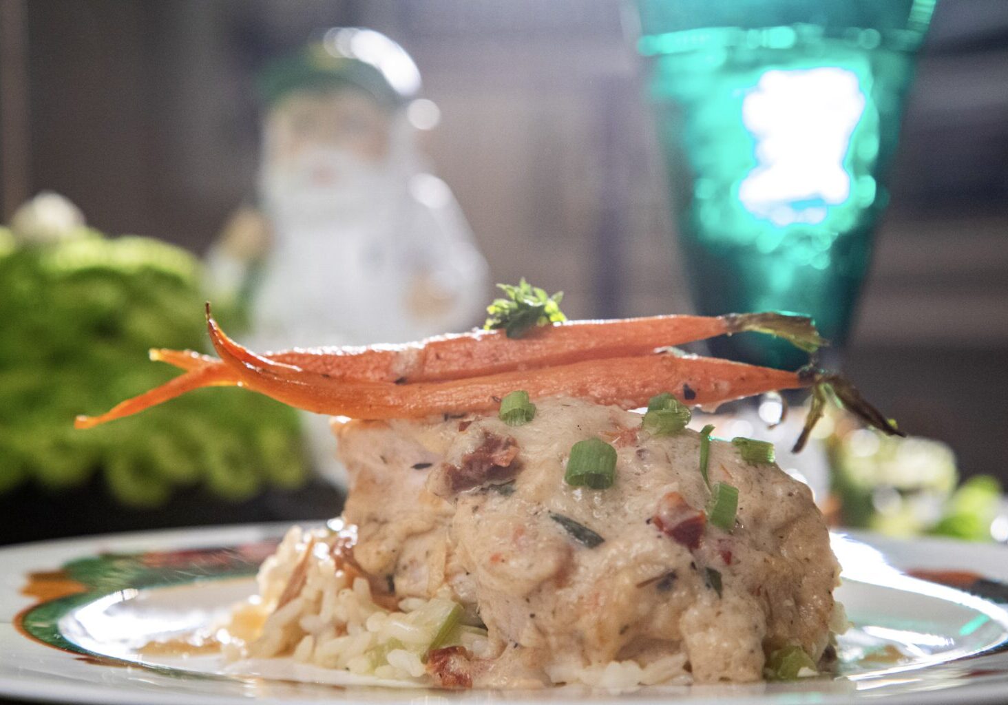 - Garnish with green onions and basil and serve warm over rice or noodles.