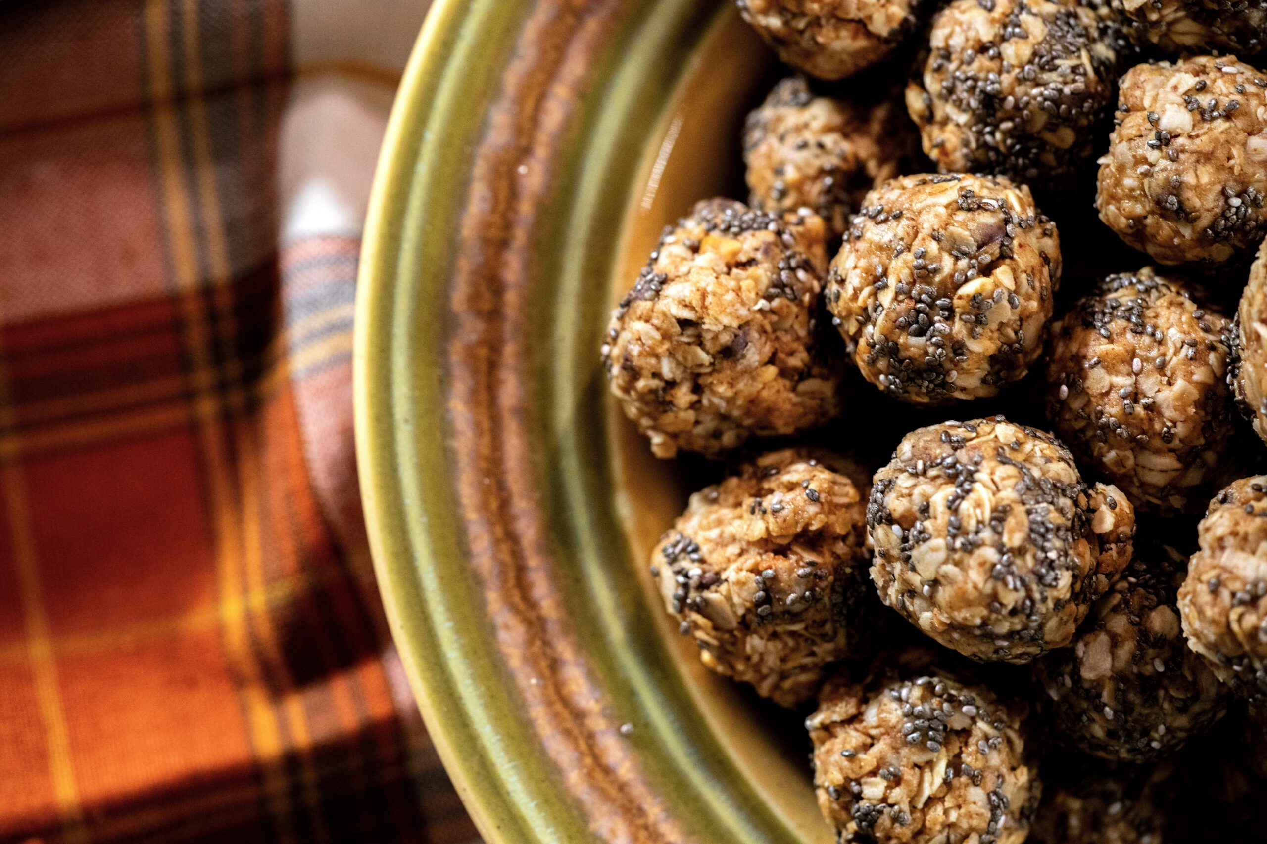 - Roll dough into 14 equal-sized balls and then gently roll in the chia seeds.