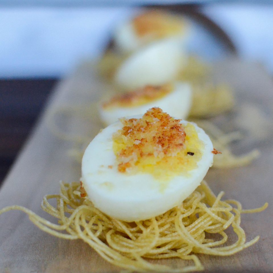 - Add vinegar, sugar, mustard seed, salt, and garlic to the pan and cook until it begins to simmer and sugar dissolves.