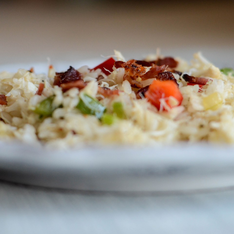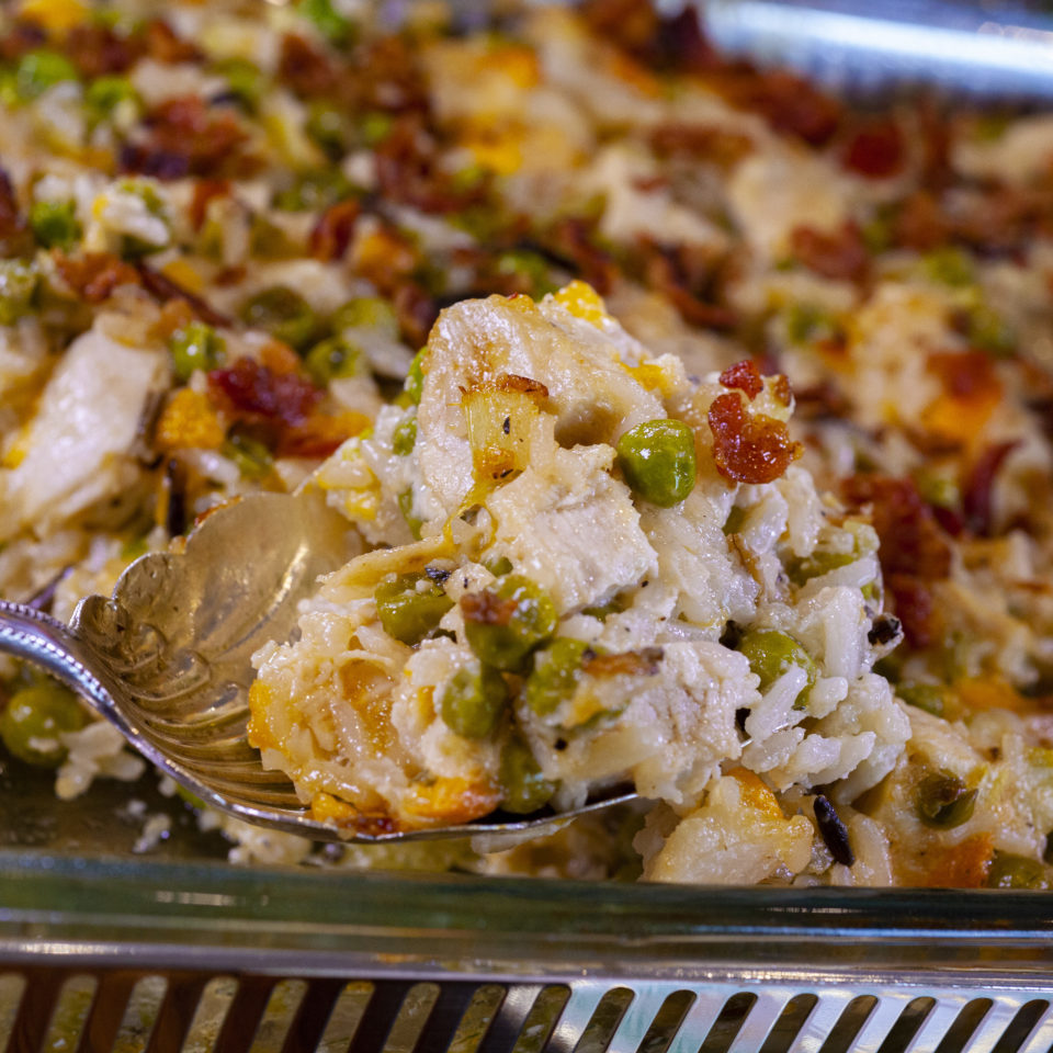 - Drizzle olive oil over the bottom of a 9 x 13” baking dish. Spread the onions on the bottom of the baking dish (it will not fully cover) and cook until sizzling and translucent (about 10 minutes).